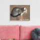 Eine rauchige, graue Tabbattacke, die am Rande eines Stuhls auf einem neutralen Hintergrund steht. Passen Sie Ihren eigenen Text an. Sie können sowohl die Schriftart- als auch die Textfarbe ändern.