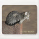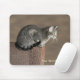 Eine rauchige, graue Tabbattacke, die am Rande eines Stuhls auf einem neutralen Hintergrund steht. Passen Sie Ihren eigenen Text an. Sie können sowohl die Schriftart- als auch die Textfarbe ändern.