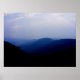 Ein wunderschönes Foto, das vom Blue Ridge Parkway der Großen Smoky Mountains übernommen wurde. Morgensonne filtert durch die Wolken, die über die Berge fliegen.