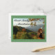 Eine schwarze Bärenkuppe schaut von einem Beitrag herab. Im Hintergrund hat man einen atemberaubenden Blick auf die Großen Smoky-Berge. Digital manipuliert.
