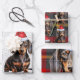This adorable smooth coated Dachshund is ready for the holiday season and looking festive in a red Santa hat. This cute Christmas dog is paired with a red seasonal plaid in red and green hues on this set of gift wrap for the dog lover.