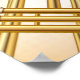 Customize this trumpet/music event advert poster with your info. Subtle musical notes and piano/keyboard keys are featured in the background.