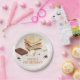 Feiern Sie einen Geburtstag im Freien (oder in) mit Freunden um ein Lagerfeuer, das köstliche s'mores. Auf diesem Teller werden Gegenstände gezeigt, die wir brauchen, um uns zu feiern, wie z.B. eine Geburtstagsparty oder einen Hinterhofbash. Eine braune Aquarellwäsche schafft einen weichen Hintergrund. Verfügbar mit passenden Produkten.