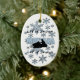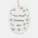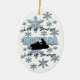 Ein grafisches Design von Schneeflocken und ein Schneemobil von Künstler/Designer Charmaine Paulson auf einem Weihnachtsschmuck. Das Ornament hat den Text "Let it Snow Montana" und Vorlagen für Ihre Personalisierung.