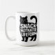 “Snack Motivated Lifeform" funny coffee mug for snackaholics. This fat black cat silhouette captures the universal truth of beings who organize their day around snacks and naps. It resonates with cat owners who live with food-obsessed cats and with humans who operate the same way. Ideal for office coworkers who are always grazing, remote workers pacing between meetings and the kitchen, and anyone whose productivity improves after a snack. The humor lands instantly and reads clearly from across a desk or break room.