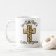 Illustration of a bronze serpent in a pole with a cross background. Custom text on each side.