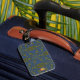 Snake Pond Blue, snygg bagagetagg med handmålat unikt mönster i gult och blått.