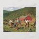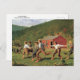 Eine kunstvolle Postkarte mit dem Ölgemälde Snap the Whip (1872) des amerikanischen Künstlers Winslow Homer (1836-1910). Schuljunge spielen draußen in der Nähe eines roten Landhauses ein Schulhaus, mit Bergen in der Ferne.