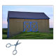 Snappy Brown Barn mit zwei überstrichenen blauen X Seidenpapier