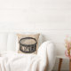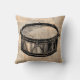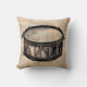 Ein Kopfkissen im Retrostil mit einer schwarzen Snare-Trommel, die auf einem alten Zeitungsstil illustriert ist.