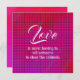 Snarky Valentinstag Card in Rosa und Rot Gingham Look. Witziges Sprichwort: Liebe muss nie jemandem sagen, er solle die Schränke nah haben.