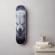 Unleash the wild on the streets with this captivating skateboard deck design featuring a ferocious, snarling wolf head. Rendered in a stunning dark fantasy illustration style, every detail of its textured fur is brought to life, culminating in piercing, electric blue glowing eyes that command attention. Set against a mystical backdrop of a cosmic nebula swirling with deep purples and blues, this design evokes raw power and otherworldly energy. Perfect for riders who embrace their inner beast and want a board that truly stands out from the pack. Ride with the spirit of the wolf.