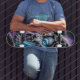Unleash the wild on the streets with this captivating skateboard deck design featuring a ferocious, snarling wolf head. Rendered in a stunning dark fantasy illustration style, every detail of its textured fur is brought to life, culminating in piercing, electric blue glowing eyes that command attention. Set against a mystical backdrop of a cosmic nebula swirling with deep purples and blues, this design evokes raw power and otherworldly energy. Perfect for riders who embrace their inner beast and want a board that truly stands out from the pack. Ride with the spirit of the wolf.