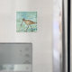 Gemälde Common Snipe Shorebird Beach House Art Magnet. Diese Kunst hat eine einzigartige und rustikale Not leidende Imitate aus Holz Hintergrund gibt ihm einen verwitterten Küstenstreifen Stil. Ideal für Hütte, Seeufer oder Strand-Zuhause. Perfekt für Ihre Zuhause oder Ferienhäuser am Strand. Kunst aus Jenns Emporium.