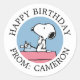 Fügen Sie diesen niedlichen Birthday-Aufkleber mit Snoopy zu jedem Geschenk hinzu.