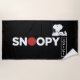 Snoopy relaxes against a rock on top of his name in English and Japanese.