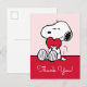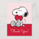 Senden Sie Ihren Dank mit dem reinsten Ausdruck der Zuneigung! Diese schöne Snoopy-Dankeskarte zeigt den beliebten Beagle, der herzlich ein leuchtend rotes Herz vor einem sanften rosa Hintergrund hält. Sie ist die perfekte Karte, um tiefe Dankbarkeit auszudrücken, egal ob für ein aufmerksames Geschenk, eine freundliche Geste oder um Liebe zu jedem Anlass zu feiern. Die Nachricht im Inneren der Karte passt zu Ihren herzlichen Gefühlen. Die klassische schwarz-weiße Snoopy-Illustration, gepaart mit dem sanften rosa Hintergrund, schafft eine sofortige warme und liebevolle Begrüßung, die die Empfänger in Ehren halten werden.