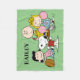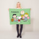 Karo aus Snoopy, während Lucy den Fußball in Position hält, Sally jubelt, und Charlie Brown bewundert seine Pfeife.