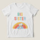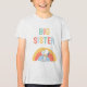 Lassen Sie die große Schwester sich besonders fühlen mit diesem bezaubernden Snoopy-Regenbogen-T-Shirt! Es zeigt Snoopy, der mit Woodstock unter einem pastellfarbenen Regenbogen sitzt und verwendet fröhliche Buchstaben, um ihre aufregende neue Rolle bekannt zu geben. Es ist die perfekte, nostalgische Art für sie, die Ankunft des Neuen zu feiern. Es ist ein warmes und fröhliches Geschenk, das sie zur Baby-Party tragen oder stolz tragen kann, wenn die Familie ihr neuestes Mitglied begrüßt!