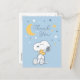 Versenden Sie eine wirklich persönliche Dankesnachricht mit dieser charmanten Peanuts-Snoopy-und-Woodstock-Dankeschön-Postkarte. Die Vorderseite zeigt die herzliche "Über den Mond"-Illustration, auf der Snoopy Woodstock umarmt, vor einem beruhigenden, hellblauen, himmlischen Hintergrund. Anders als bei einer Standardkarte ist die Rückseite im klassischen Postkartenstil gestaltet und verfügt über einen ausgewiesenen Bereich für eine handgeschriebene Nachricht und Adresse, wodurch es für Eltern leicht ist, nach der geschlechtsneutralen Babyparty oder der Babyparty für einen Jungen schnell eine persönliche, herzliche Nachricht an jeden Gast zu schreiben. Dies ist eine einfache, schöne und effiziente Möglichkeit, Dankeschön zu sagen.