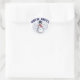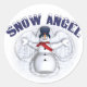 Schneemann macht einen Schneegel im Schnee. Blauer Text Schneegel.