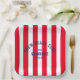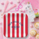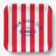 Snow Beach Club Red Cabana Streifen Custom Ski quadratische Platte. Personalisieren Sie sich mit dem Jahr Ihrer Skireise, dem Namen und der Lage Ihres Skiorts. Ideal für einen Gruppenausflug oder für einen Ski- oder Schneebachelor oder Junggeselinnen-Abschied. Entworfen, um unsere Snow Beach Club Red Cabana Stripe Kollektion zu entsprechen.