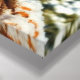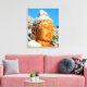 Der Kopf eines geschnitzten Holz Buddha mit frischem Schnee bedeckt