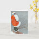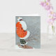 Art Deco vintage illustration of a woman wearing a red fur lined winter coat and hat, standing in the blowing snow with a cluster of snow buntings flying in front of her. Magazine cover illustration by Will Hammell (1914).