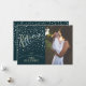 Eine skurrile, handgeschriebene Skript-Foto-Karte Design vor einem dunklen marinösen Hintergrund und weißer fallender Schnee.