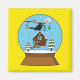 Eine Illustration einer niedlichen Schneekugel mit einem schwarzen Vogel, der auf einem baraefarbigen Haus mit bunten Weihnachtsbällen in einer schneebedeckten Landschaft und Kiefernbäumen singt. Dieses niedliche Cartoon Vogeldesign ist eine Geschenkidee für Weihnachts- und Weihnachtsliebhaber und Winterurlauber.