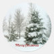 Snow-Laden Bäume, frohe Weihnachten Runder Aufkleber