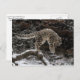 Schneeleopardenwabe springt von einem Baum, um in den Schnee zu springen.