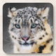 Sehr cooler Leopard mit schönen Gesichtsmarkierungen, blauen Augen und einer rosa Nase, bedeckt mit einem leichten Stäuben von Schnee. Ein tolles Geschenk für alle, die große Dschungelkatzen Lieben.
