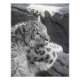 Ein schönes nahes Bild eines Schneeleoparden mit eisblauen Augen, die über ihre Schulter auf Sie schauen. Verfügbar in allen Größen bis 13x19