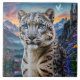Snow Leopard in Wildblumen in einem Tal umgeben von Bergen KI Kunst von minx267