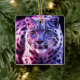 Feiern Sie die Schönheit der Tierwelt mit diesem atemberaubenden Keramik-Ornament mit einem nahen Portrait eines Schneeleoparden. Die markanten lila und blauen Farbtöne bringen Anmut und Power dieses majestätischen Tieres zum Leben. Dieses Dekor ist ideal zum Hängen am Baum, als Teil einer Sammlung zum Thema Wildtiere oder als Geschenk an einen Tierliebhaber geeignet und verleiht jedem Ort eine Touch von Eleganz und Naturschönheit.