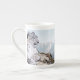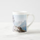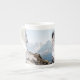 Ein stolzer Schneeleopard steht an seinem bergigen Habitat.