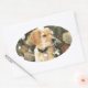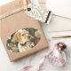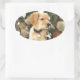 niedlicher, goldgelber Retriever im Schnee gegen Felswand mit Efeu