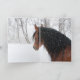 A gorgeous bay Andalusian stallion stands in the softly falling snow in Colorado. This image is by Carol J. Walker, all rights reserved.