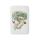 Dieses Design zeigt eine Illustration des amerikanischen Künstlers Harrison Fisher (1877-1934). Es zeigt einen rosaroten Jungen, der einen Schneeball in der Hand hält. Er trägt einen weißen Mantel und Hut für den Winter, und er hat rote Handschuhe auf den Händen. Der Junge ist im Begriff, den Schneeball zu werfen. Er ist glücklich und lächelt. Hinter ihm liegt Schnee, der die Weihnachtsbäume bedeckt.
