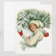 Dieses Design zeigt eine Illustration des amerikanischen Künstlers Harrison Fisher (1877-1934). Es zeigt einen rosaroten Jungen, der einen Schneeball in der Hand hält. Er trägt einen weißen Mantel und Hut für den Winter, und er hat rote Handschuhe auf den Händen. Der Junge ist im Begriff, den Schneeball zu werfen. Er ist glücklich und lächelt. Hinter ihm liegt Schnee, der die Weihnachtsbäume bedeckt.