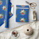 Stilvolle und farbenfrohe Schneeballverpackungspapier mit blauem Hintergrund.
