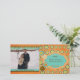 Verbringen Sie Ihren Feiertagsjubiläum mit Freunden und Familie, beginnend mit dieser einzigartigen Snowball Whimsey Weihnachtsfotokarte mit einem orangefarbenen Hintergrund mit Schneebällen und Flocken aus braun, blau, gelb, gelb/grün, hängenden Ziergegenständen und Bereichen, die Sie Ihren Vornamen, Nachnamen, das aktuelle Jahr und Ihr Foto hinzufügen können!