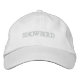 Ein klassischer bestickter Hut mit dem Text Snowbird. Fügen Sie Ihren Text für ein persönliches Einzelprodukt hinzu.