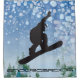 Snowboarden Design Duschvorhang, mit einer Snowboard-Silhouette vor einer schneebedeckten Winterlandschaft. Ideal für Snowboarder auf Ihrer Einkaufsliste!