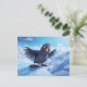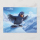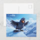 Snowboard fahrender Rabe im Winter Toon-Stil Postkarte