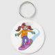 Ein Mädchen, das auf einem Hang snowboardet. Dieses Design wirkt auf diesem Schlüsselanhänger wirklich effektiv