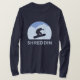 Ein cooler Langarm-T - Shirt für Snowboarder. Es zeigt ein grafisches Set der Snowboarder-Silhouette gegen eine Berglandschaft, zusammen mit dem Wort Shreddin, einem Snowboarder-Satz, der bedeutet, auf den Schnee zu gehen.