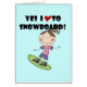 Ein niedlicher Snowboarderentwurf auf Snowboarding T - Shirts, Tassen, Karten, Aufkleber, Hoodies, Taschentaschen und anderes Snowboarderkleid und -geschenke, die einen Strichmännchenmädchensnowboarder und -text, der, kennzeichnen "ja mich Liebe zum Snowboard!" liest.