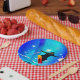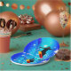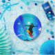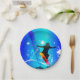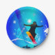 Snowboarding, Snowboarder mit Brett auf blauem Pappteller